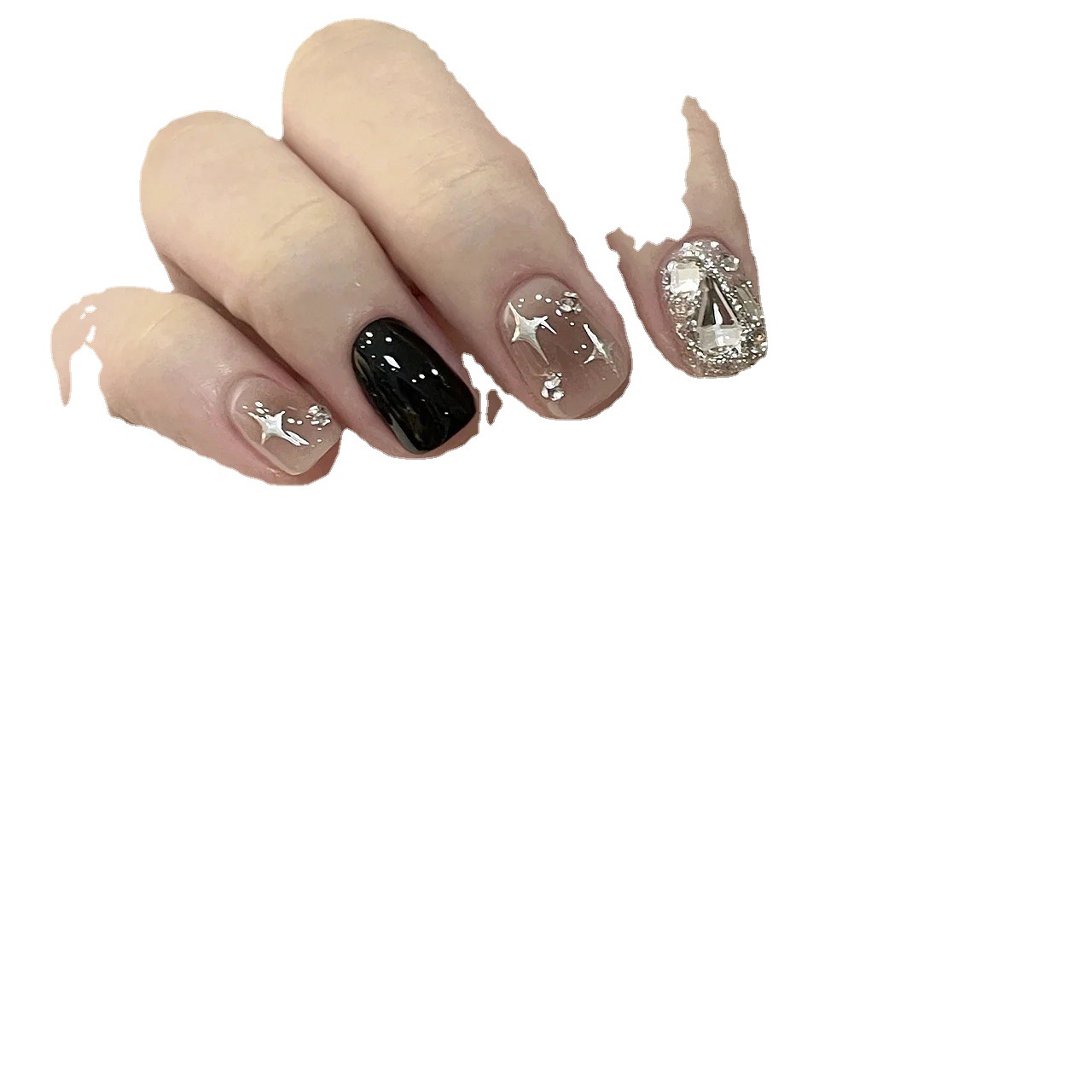 Black Heart Rhinestone Glitter Press-On Nails features sparkle-forward detail and a light-catching finish with black heart rhinestone accents. It works especially well for parties, holidays, birthdays, nights out, and standout styling.