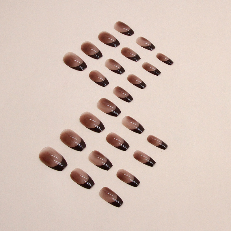 Brown French Glitter Press-On Nails features crisp tip contrast and a refined salon-inspired look with brown glitter accents. It works especially well for bridal plans, date nights, workdays, and dressier events.