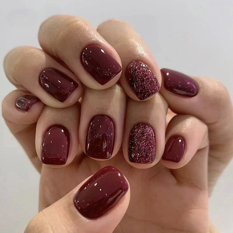 Burgundy Glitter Toe Press-On Nails