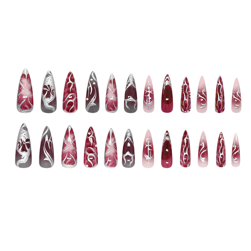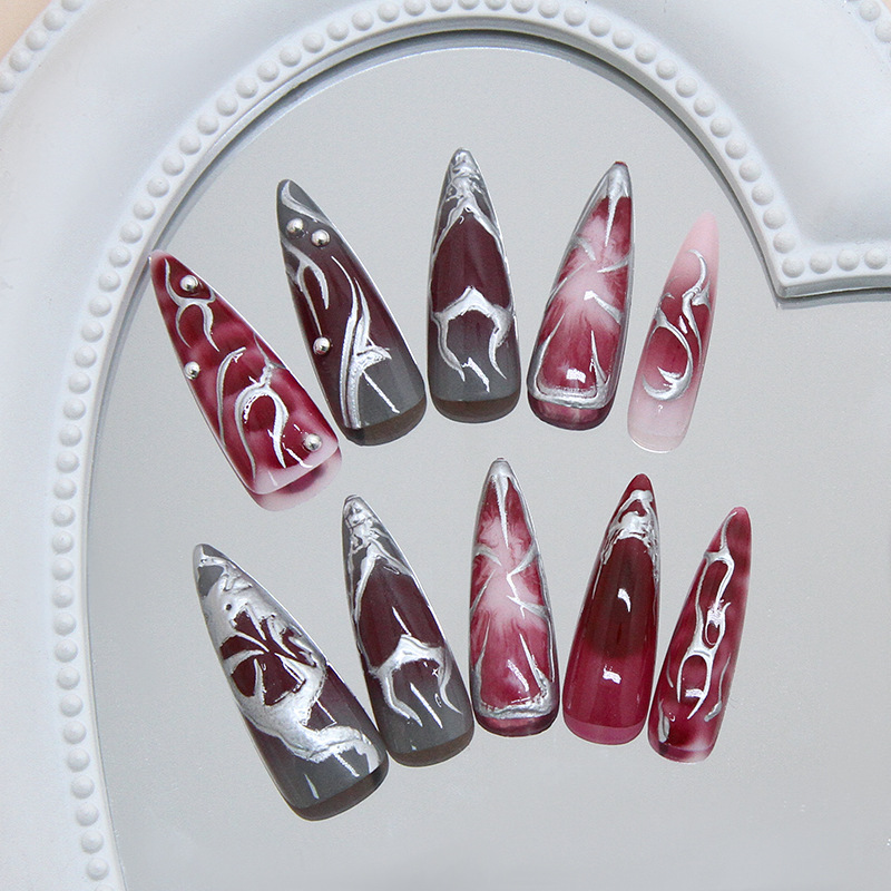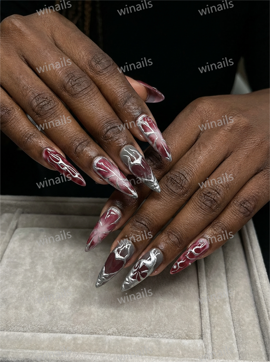 Burgundy Silver Marble Classic Press-On Nails features clean lines and a polished everyday finish with burgundy silver marble accents. It works especially well for daily wear, office outfits, dinners, and polished occasions.