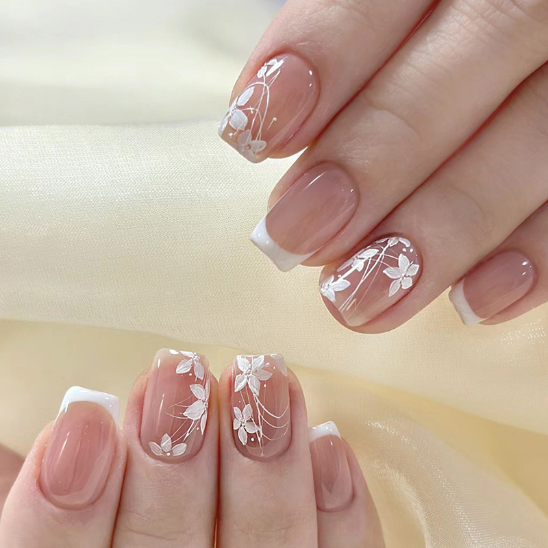 Cute Floral Press-On Nails features soft decorative nail art with a romantic seasonal feel with cute accents. It works especially well for spring dressing, vacations, gift moments, brunches, and romantic styling.