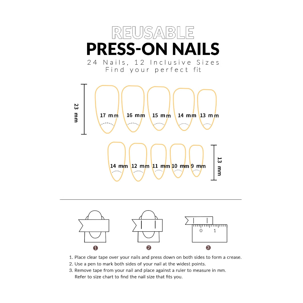 Each set includes 24 nails in 12 different sizes to help you get a comfortable, secure fit for everyday wear.