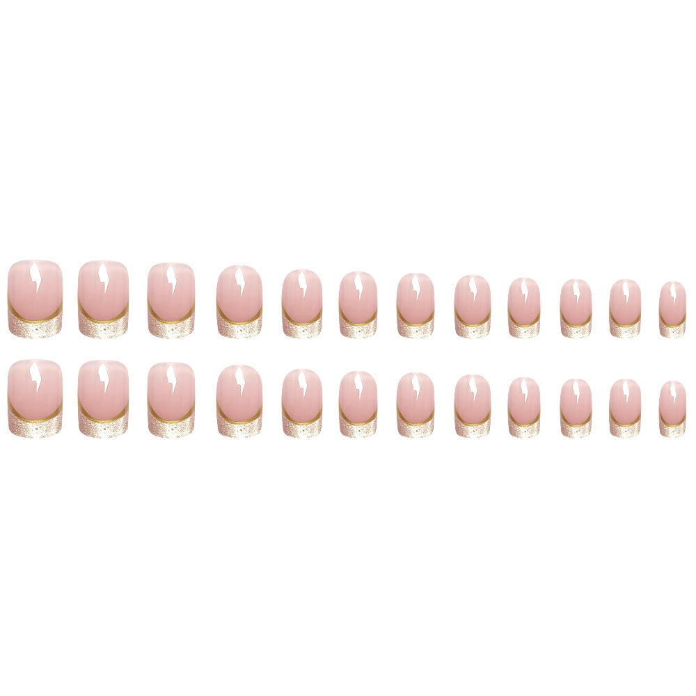 Elevate your look with our Glitter Pink & Gold French Tip Press On Nails. This sophisticated design reimagines the classic French manicure with a sheer nude-pink base, a delicate gold metallic trim, and a sparkling glitter tip that adds a touch of modern luxury.