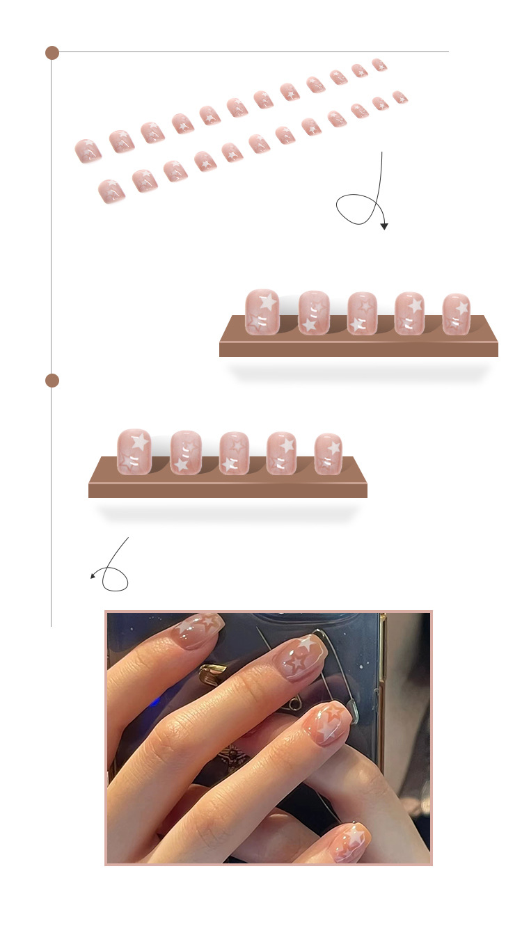 Ombre Star Classic Press-On Nails features clean lines and a polished everyday finish with ombre star accents. It works especially well for daily wear, office outfits, dinners, and polished occasions.