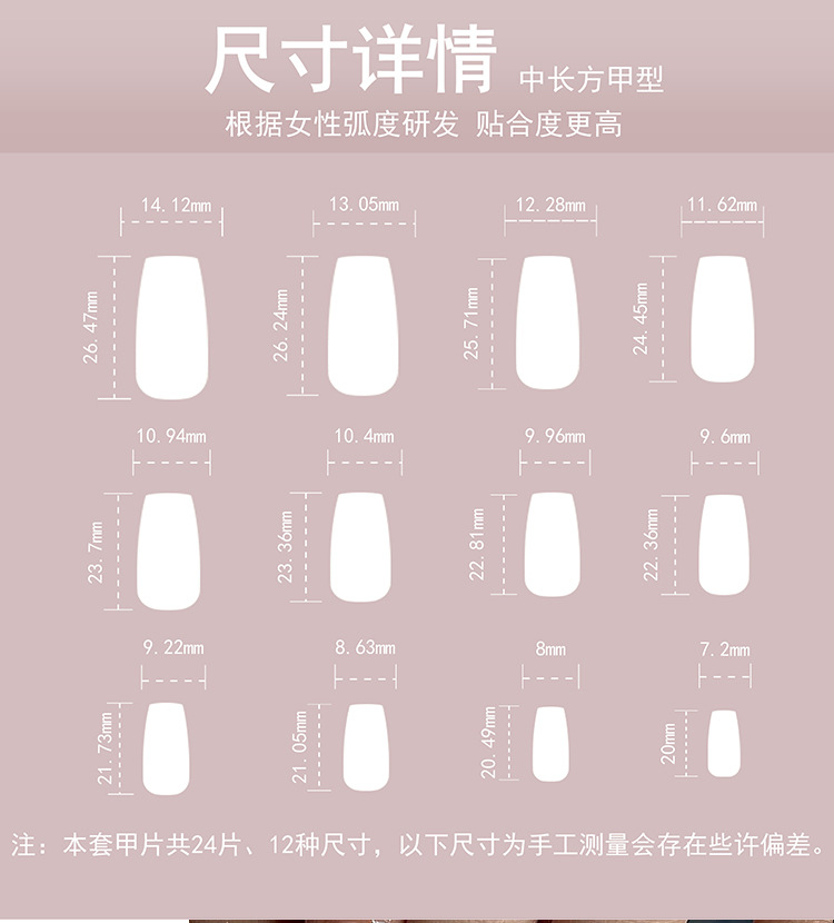 Each set includes 24 nails in 12 different sizes to help you get a comfortable, secure fit for everyday wear.