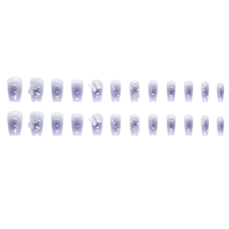 Purple Ombre 3D Butterfly & Floral Press-On Nails - Long Square features soft decorative nail art with a romantic seasonal feel with purple ombre 3d butterfly accents and a long square shape. It works especially well for spring dressing, vacations, gift moments, brunches, and romantic styling.