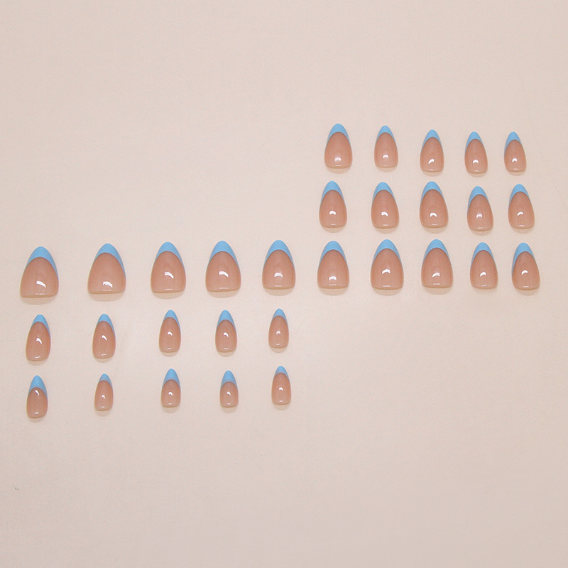 Home/Shop/French/Sky Blue V-Cut French Tip Press-On Nails - Long Almond