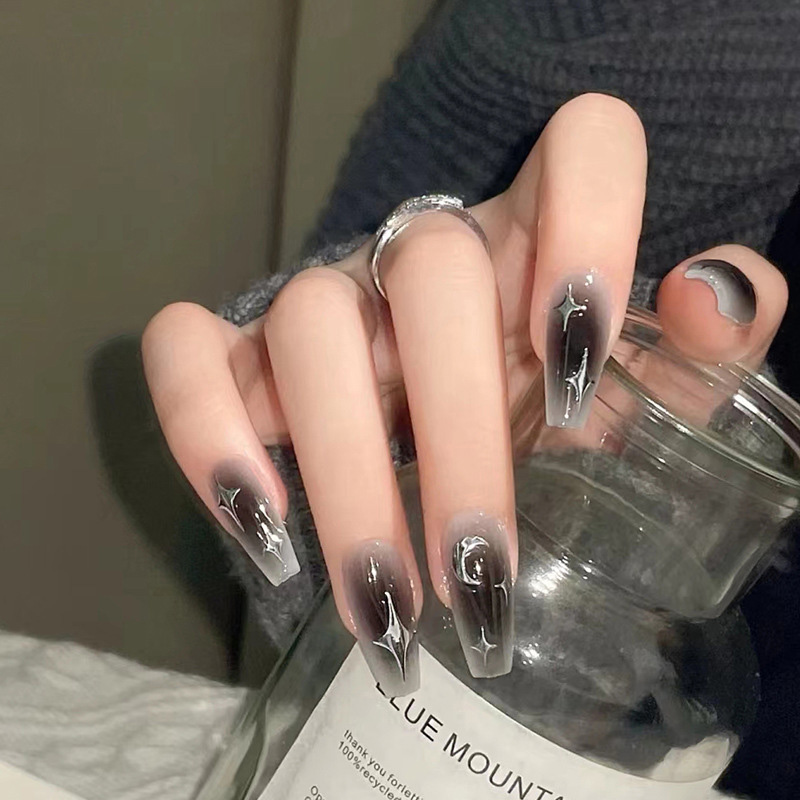 Smoky Chrome Star Glitter Press-On Nails features sparkle-forward detail and a light-catching finish with smoky chrome star accents. It works especially well for parties, holidays, birthdays, nights out, and standout styling.